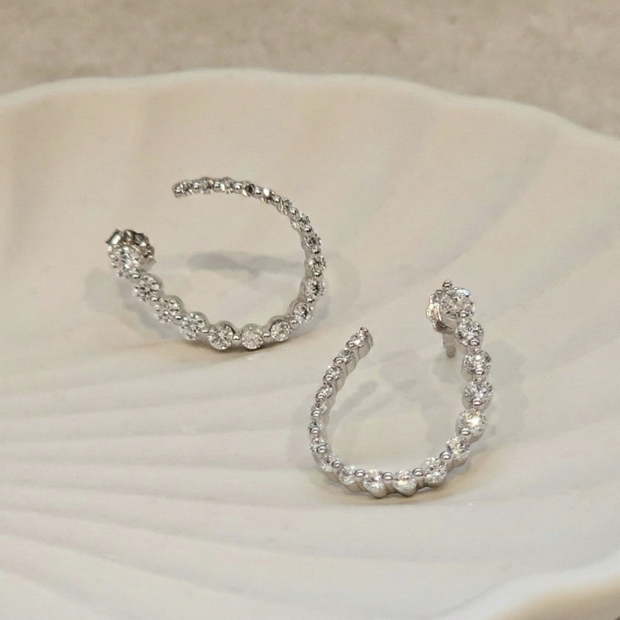 Celebrate your most precious moments with our Eternity Curve Earrings, where timeless elegance meets modern sophistication. These beautifully curved pieces frame the face with graceful lines, also making them an ideal choice for brides seeking understated luxury on their wedding day. Beyond the aisle, they transition effortlessly into your everyday collection, offering versatile glamour for any occasion. Choose earrings that honour both tradition and personal style, a jewellery investment that remains eternally beautiful.